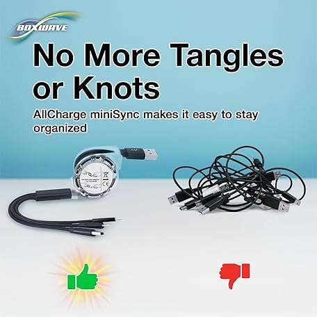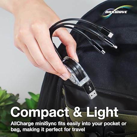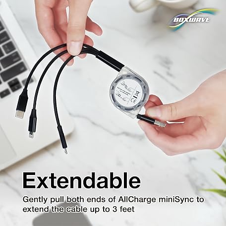BoxWave Cable Compatible with Kyocera Torque G04 - AllCharge miniSync, Retractable, Portable USB Cable - Jet Black