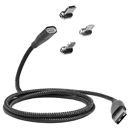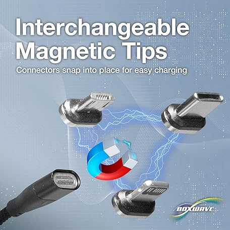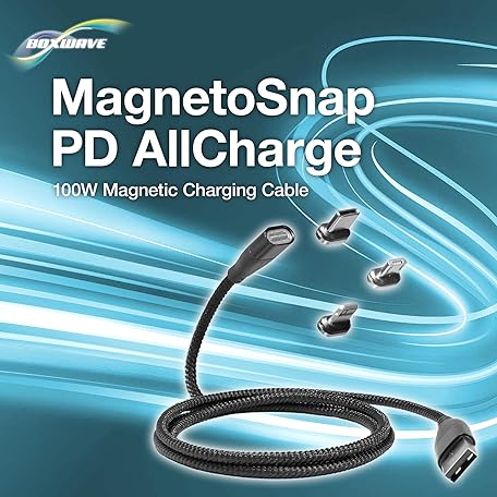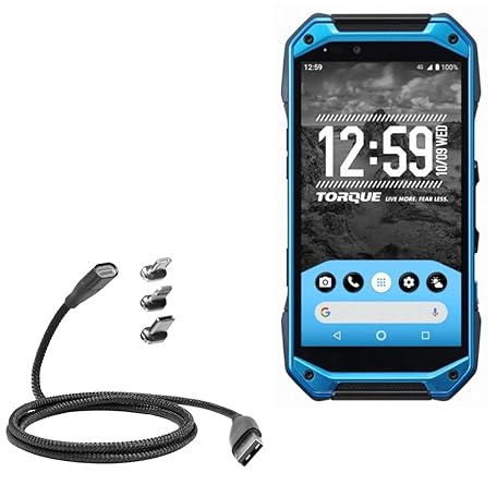BoxWave Cable Compatible with Kyocera Torque G04 - MagnetoSnap PD AllCharge Cable (100W), Magnet Charging Braided USB Type-C Micro - Jet Black