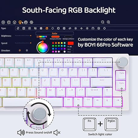 Thông tin sản phẩm BOYI 66Pro Rapid Trigger Magnetic Switch 65% Mechanical Keyboard,Hall Effect Gasket-Mounted RGB HotSwap Hyper-Fast Adjustable Actuation Wired Compact Gaming Keyboard with Knob(White)