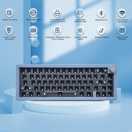 Sản phẩm BOYI GMK67 65% Keyboard Kit,Hot Swap Gasket Mounted PCB Custom RGB Barebones Keyboard Wireless Tri-Mode BT5.0/2.4GHz/USB-C Wired Custom Gaming DIY Kit(Blue+Knob) đang được bán với giá ưu đãi là $54.4891 tại nước Mỹ.