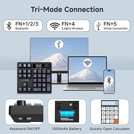 Thông tin sản phẩm BOYI TD31Pro Mechanical Number Pad,Bluetooth5.0/2.4G/Type-C Wireless Numeric Keypad,RGB HotSwap Numpad with Screen&Knob,PBT Keycaps Gasket keypad Programmable for Win/Mac/Gaming(Black-Star Moon)