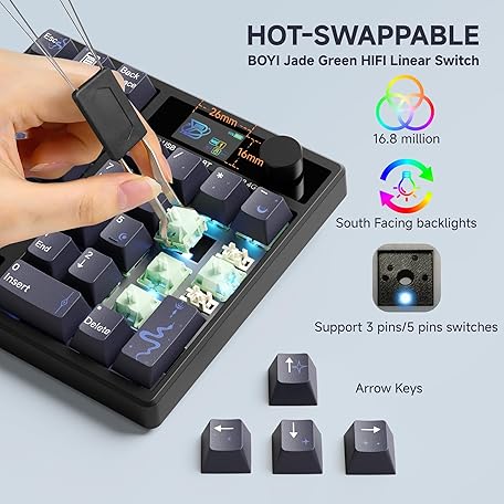 Thương hiệu BOYI là cái tên nổi tiếng được rất nhiều khách hàng trên thế giới chọn lựa. Với kiểu dáng đẹp mắt, sang trọng, sản phẩm BOYI TD31Pro Mechanical Number Pad,Bluetooth5.0/2.4G/Type-C Wireless Numeric Keypad,RGB HotSwap Numpad with Screen&Knob,PBT Keycaps Gasket keypad Programmable for Win/Mac/Gaming(Black-Star Moon) là sự lựa chọn hoàn hảo nếu bạn đang tìm mua một món cho riêng mình.