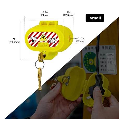 BOZZYS Plug Locks for Power Cords with Keys - Small Self-Locking Cover (No Padlock Required),3.5"*2"*3"- Secure Electrical Plugs Lockout, Prevent Accidental Use - OSHA Safety