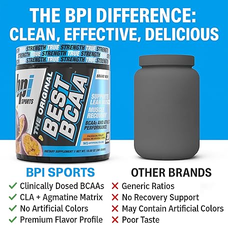 Thông tin sản phẩm BPI Sports Best BCAA Powder - Muscle Recovery Support - Branched Chain Amino Acids | Building Blocks of Protein and Muscle - Post Workout Recovery – Hydration - Passion Fruit, 30 Servings