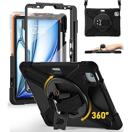 BRAECN for iPad Air 11 inch Case 2025(M3) 2024(M2),iPad Pro 11 inch(4th/3rd/2nd/1st)& Air 10.9"(5th/4th) Case Protective with Pencil Holder Screen Protector 360°Rotating Stand Handle Full Body Cover