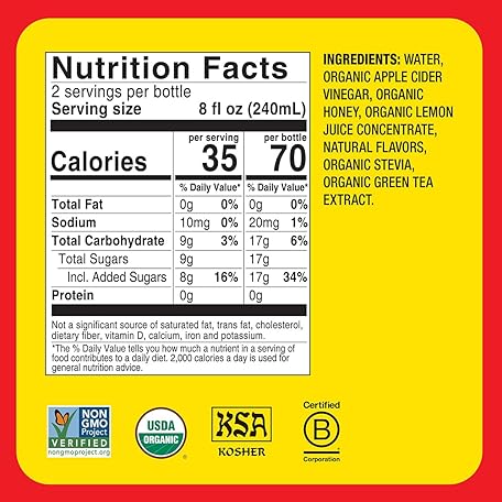 • Bragg Honey and Green Tea Apple Cider Vinegar Refresher - (2 Pack) 16 fl oz - Raw and Unfiltered