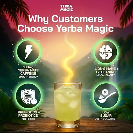 Thông tin sản phẩm Brainista Yerba Magic, Yerba Mate Tea Instant Powder Drink with Nootropics, Pre & Probiotics, Clean Energy, Mental Clarity & Gut Wellness, Low Sugar, Natural Caffeine, Strawberry Matcha, 30 Servings