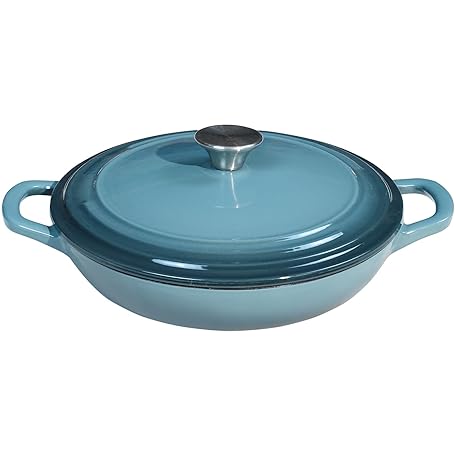 • Braiser Enameled Cast Iron Braiser 3 qt Braiser Pan with Lid Slateblue Shallow Cast Iron Casserole Braiser Pan with Handels