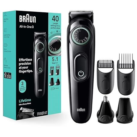 Thông tin sản phẩm Braun All-In-One Style Kit Series 3 3450, 5-in-1 Trimmer for Men with Beard Trimmer, Ear & Nose Trimmer, Hair Clippers & More, Ultra-Sharp Blade, 40 Length Settings and Washable