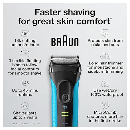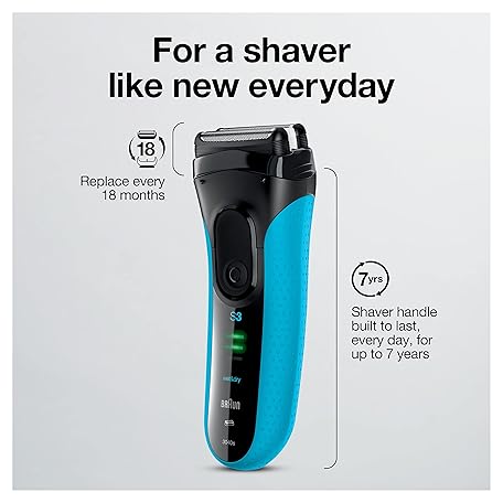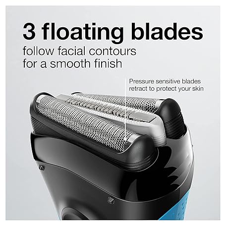 Thông tin sản phẩm Braun Electric Series 3 Razor with Precision Trimmer, Rechargeable, Wet & Dry Foil Shaver for Men, Blue/Black, 4 Piece