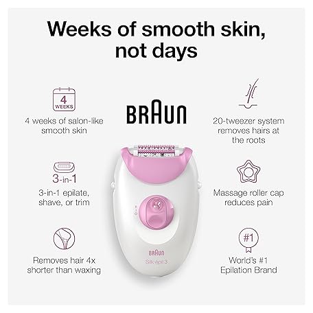 Sản phẩm Braun Epilator Silk-epil 3 3-270, Hair Removal Device, Epilator for Women, Shaver & Trimmer, Hair Removal đang được bán với giá ưu đãi là $43.5346 tại nước Mỹ.