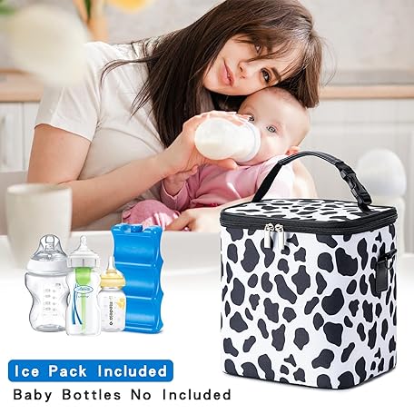 Thông tin sản phẩm Breastmilk Cooler Bag with Ice Pack Fits 6 Baby Bottles Up to 9 Ounce, Baby Bottle Bag with Shoulder Strap for Nursing Mom Daycare, Cow