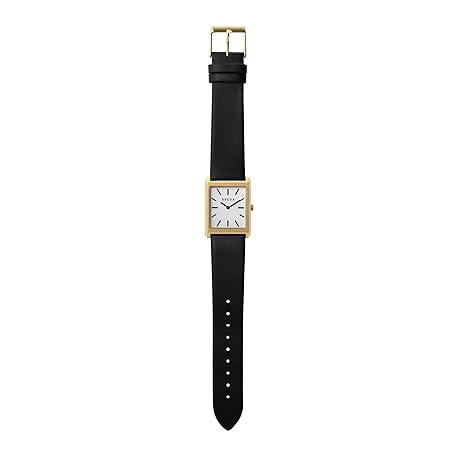 Thông tin sản phẩm Breda Virgil Rectangle Watch, 18K Gold-Plated Case, Black Genuine Leather Band, Japanese Miyota Quartz Movement, Water-Resistant, 26mm