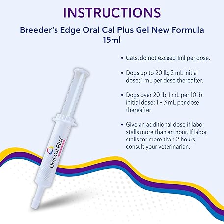 Thông tin sản phẩm Breeder's Edge Oral Cal Plus Gel, Whelping and Queening Calcium Supplement Gel for Dogs and Cats Delivers 3 Calcium Sources in Labor to Support Strong and Normal Contractions, 15ml Paste