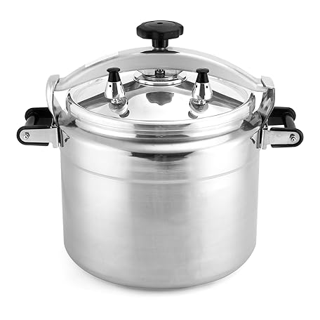 Thông tin sản phẩm BreeRainz 26 Quart Clamp On Pressure Cooker, Aluminum Pressure Cooker w/Ultra Safe Clamp Bar Locking System, Double Valves for Stable Cooking Pressure, for Family or Commercial Use