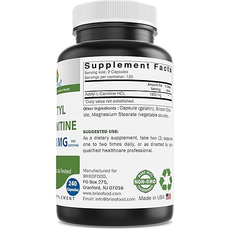 Sản phẩm Brieofood Acetyl L-Carnitine 1000 mg Per Serving- 240 Capsules. Gluten-Free, Non-GMO. đang được bán với giá ưu đãi là $17.4291 tại nước Mỹ.