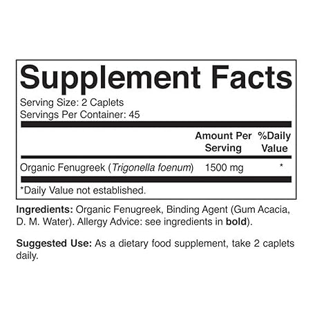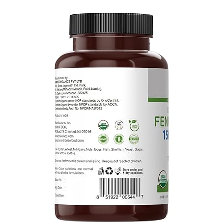 Thông tin sản phẩm Brieofood Organic Fenugreek 1500mg, 45 Servings, Vegetarian, Gluten Free, 90 Vegetarian Tablets