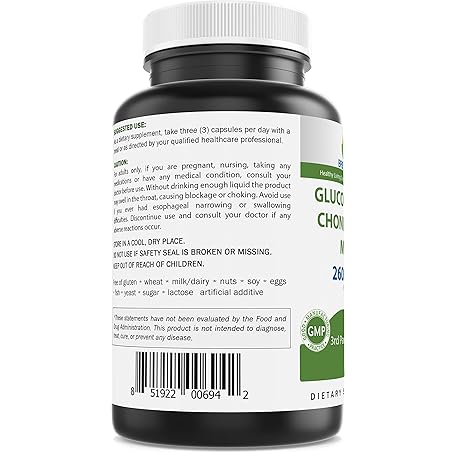 Thông tin sản phẩm Brieofood Triple Strength Glucosamine Chondroitin MSM 2600mg/Serving Capsules, Supports Healthy Joint, Cartilage and Connective Tissue - Promotes Joint Comfort & Flexibility 180 Count