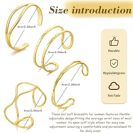 Sản phẩm BROCC 4PCS 14K Gold Plated Stackable Cuff Bracelets Set for Women Adjustable Open Cuff Bangle Bracelet Hammered Wrist Thin Minimalist Gold Cuff Bracelets đang được bán với giá ưu đãi là $11.9791 tại nước Mỹ.