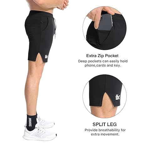 • BROKIG Men's Airstretch Gym Shorts,5 Inch Slim Fit Running Exercise Athletic Workout Shorts for Men with Zipper Pockets