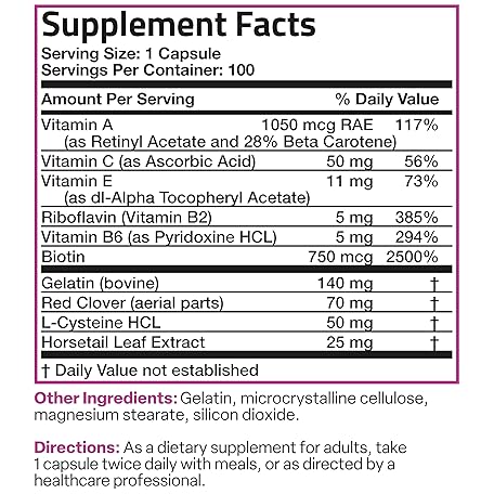 Thông tin sản phẩm Bronson Hair, Skin & Nails with Biotin Extra Strength Vitamin Supplement for Women, 100 Capsules