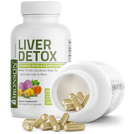 Thông tin sản phẩm Bronson Liver Detox Advanced Detox & Cleansing Formula Supports Health Liver Function with Milk Thistle, Dandelion Root, Turmeric, Artichoke Leaf & More, Non-GMO, 360 Vegetarian Capsules
