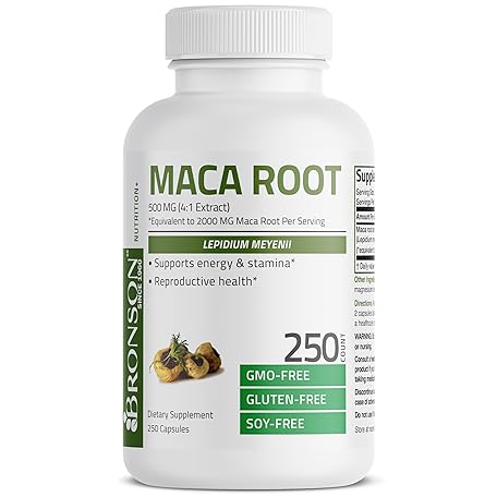 Sản phẩm Bronson Maca Root Lepidium Meyenii Non-GMO, 250 Vegetarian Capsules đang được bán với giá ưu đãi là $16.3391 tại nước Mỹ.