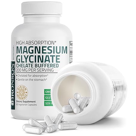 Sản phẩm Bronson Magnesium Glycinate 200 MG per Serving Chelated for High Absorption, Gentle On Stomach, Non-GMO, 60 Vegetarian Capsules đang được bán với giá ưu đãi là $10.8891 tại nước Mỹ.