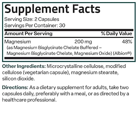 Thông tin sản phẩm Bronson Magnesium Glycinate 200 MG per Serving Chelated for High Absorption, Gentle On Stomach, Non-GMO, 60 Vegetarian Capsules