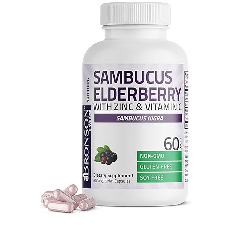 Sản phẩm Bronson Sambucus Elderberry with Zinc & Vitamin C Triple Immune Support Complex Immune & Antioxidant Protection, Non-GMO, 60 Vegetarian Capsules đang được bán với giá ưu đãi là $10.8673 tại nước Mỹ.