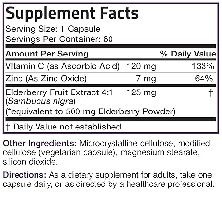 Thông tin sản phẩm Bronson Sambucus Elderberry with Zinc & Vitamin C Triple Immune Support Complex Immune & Antioxidant Protection, Non-GMO, 60 Vegetarian Capsules