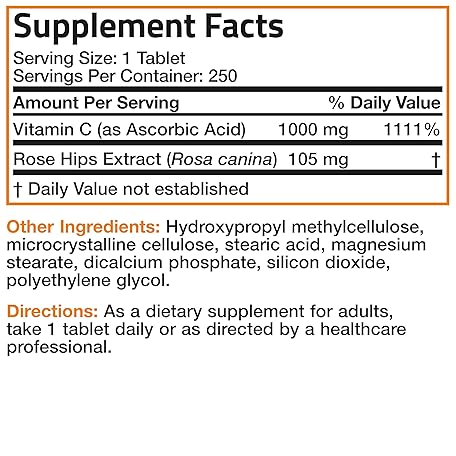 Sản phẩm Bronson Vitamin C 1000 mg with Rose HIPS Sustained Release, 250 Tablets đang được bán với giá ưu đãi là $21.7891 tại nước Mỹ.