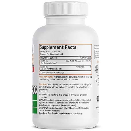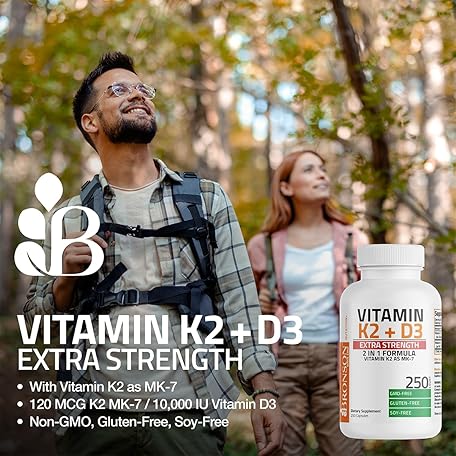 Thông tin sản phẩm Bronson Vitamin K2 (MK7) with D3 Extra Strength Supplement Bone Health Non-GMO Formula 10,000 IU & 120 mcg MK-7 Easy to Swallow D K, 60 Capsules
