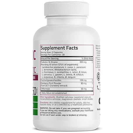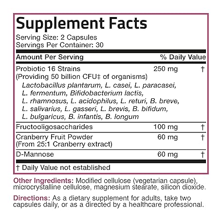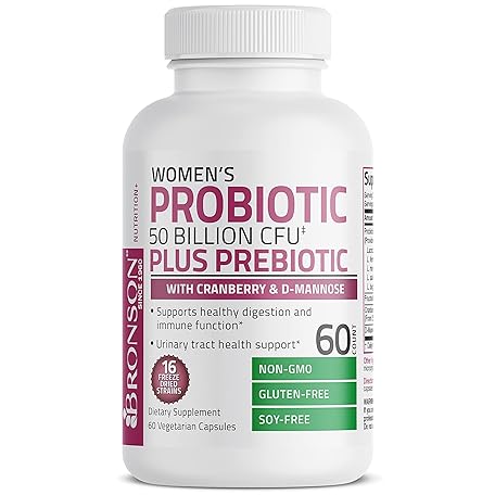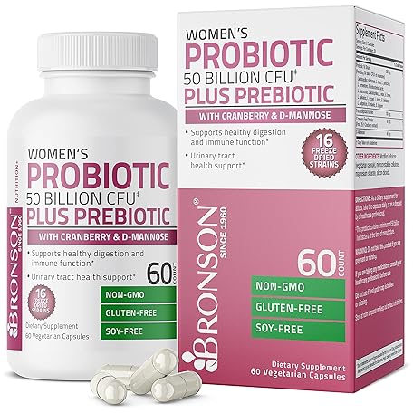 Thông tin sản phẩm Bronson Women's Probiotic 50 Billion CFU + Prebiotic with Cranberry & D-Mannose – Vaginal Health, Healthy Digestion, Immune Function and Urinary Tract Support, Non-GMO, 60 Vegetarian Capsules