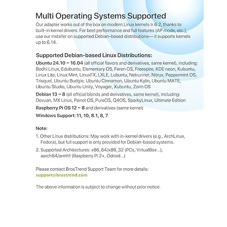 Thông tin sản phẩm BrosTrend 650Mbps Linux Compatible WiFi Adapter Supports Kali Linux, Ubuntu, Mint, Debian, Kubuntu, Zorin, PureOS, Raspberry Pi 2+, Windows, Dual Band USB Wireless Adapter w/ Long Range WiFi Antenna