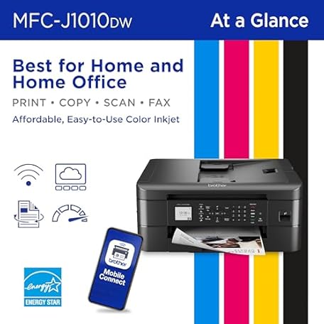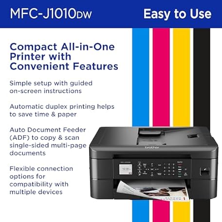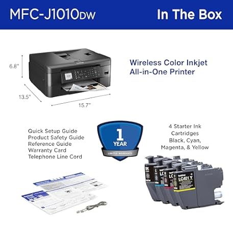 Thông tin sản phẩm Brother MFC-J1010DW Wireless Color Inkjet All-in-One Printer, Duplex Printing, Mobile & Cloud Print, Compact Design, 1.8" Color Display, Works with Alexa