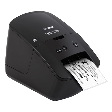 Thông tin sản phẩm Brother QL-600 Desktop Monochrome Label Printer, up to 2.4" Label Width, No ink required, uses Brother Genuine DK drop-in Rolls for Fast Labeling and easy integration with Microsoft applications