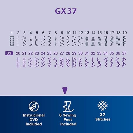 Thông tin sản phẩm Brother Sewing Machine, GX37, 37 Built-in Stitches, 6 Included Sewing Feet