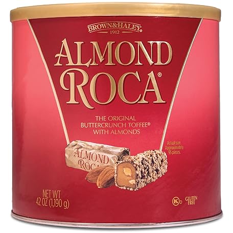 Sản phẩm Brown & Haley Almond ROCA The Original Buttercrunch Toffee with Almonds Canister - Individually Wrapped Chocolate for Holiday Gift Basket - Gluten Free Kosher Chocolate Candy for Sharing, 42oz Pack of 1 đang được bán với giá ưu đãi là $41.1584 tại nước Mỹ.