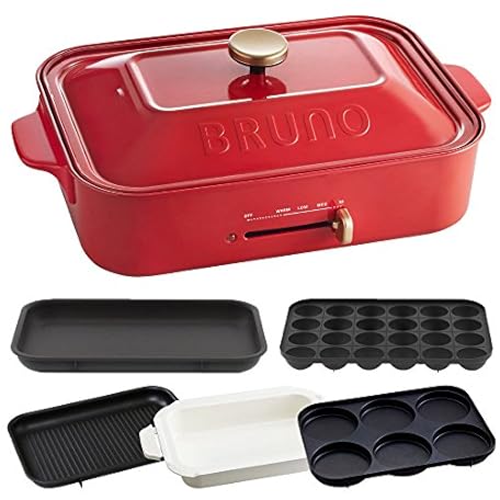 Sản phẩm BRUNO Compact hot Plate + Ceramic Coated pan + Grill Plate + Multi Plate 4piece Set (Red)【Japan Domestic Genuine Products】 đang được bán với giá ưu đãi là $333.54 tại nước Mỹ.