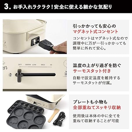 Sản phẩm BRUNO Peanuts BOE070-ECRU Snoopy Compact Hot Plate Body & 3 Plates (flat & takoyaki & pancake) White Japan Import đang được bán với giá ưu đãi là $275.5302 tại nước Mỹ.