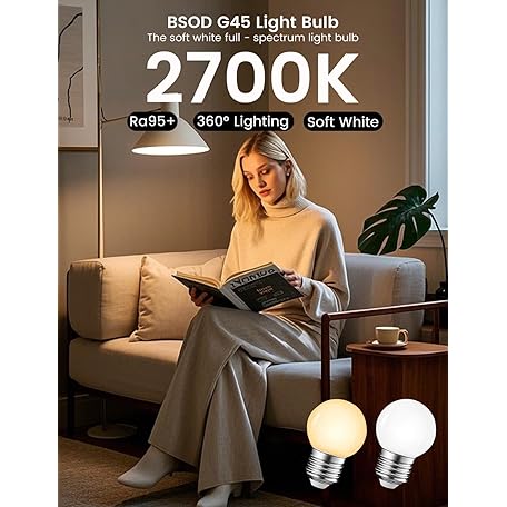 • BSOD Warm Light Bulbs, Full Spectrum Light Bulb 2700K LED Lightbulbs G45 Soft White Grow Small E26 Refrigerator 5W Eq 40W Appliance for Home, Plant, Freezer, Lamp (1 Warm White Bulb)