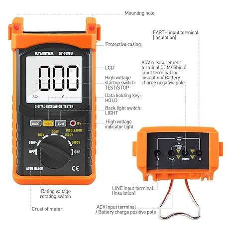 Thông tin sản phẩm BTMETER BT-6688B Megohmmeter 200 Gig Ohm Digital Insulation Resistance Tester, 500V/1kV/2.5kV/5kV Test Voltage, Auto Ranging, Backlight Display