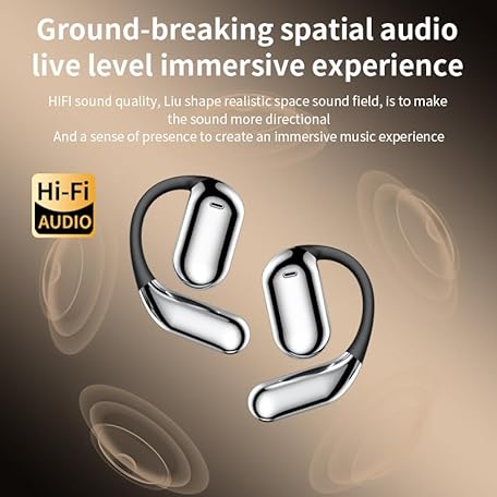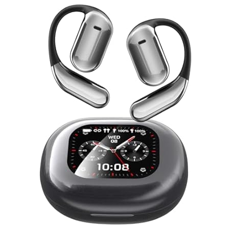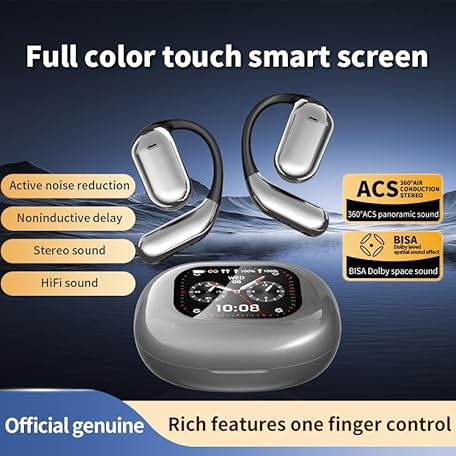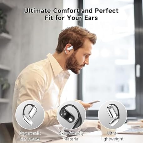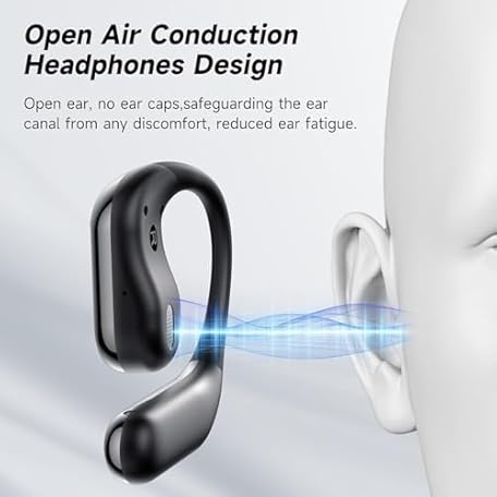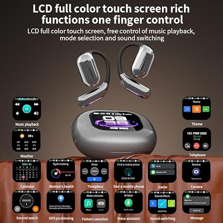 BUABMEQ Open Ear Earbuds Ultra Comfort Bluetooth 5.4 Headphones Over The Ear Earbuds with Intelligent Touch Screen Ear Hooks IPX7 Waterproof Bone Conduction Earbuds for Running Fitness Sport Grey
