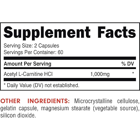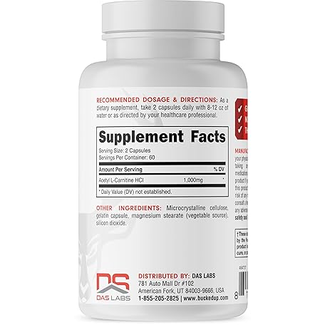 Thông tin sản phẩm Bucked Up Acetyl L-Carnitine 1000mg Per Serving, Supports Brain Function Essentials (60 Servings, 120 Capsules)