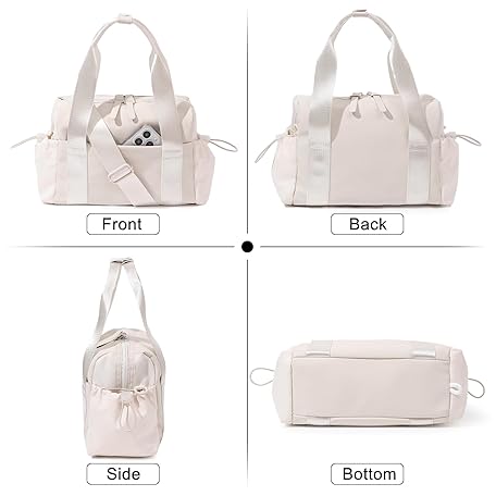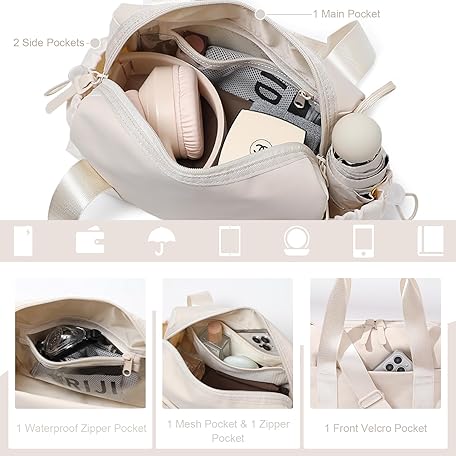 Bucosd Small Gym Bag for Women, Mini Crossbody Gym Duffle Bag with Wet Compartment, Carry on Gym Tote Bag for Workout Dance Sport Travel (Mini-Beige)