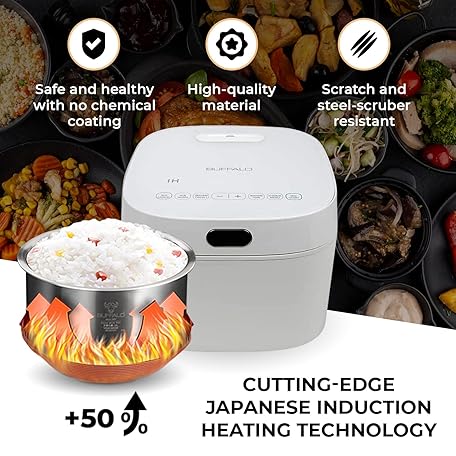 Thông tin sản phẩm BUFFALO SMART COOKER Induction Heating IH Rice Cooker and Warmer, 1 L, 5 cups of rice, Non-Coating inner pot, Efficient, Multiple function, White (5 cups)