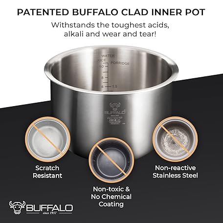 Thương hiệu BUFFALO là cái tên nổi tiếng được rất nhiều khách hàng trên thế giới chọn lựa. Với kiểu dáng đẹp mắt, sang trọng, sản phẩm BUFFALO Titanium Grey IH SMART COOKER, Rice Cooker and Warmer, 1.8L, 10 cups of rice, Non-Coating inner pot, Efficient, Multiple function, Induction Heating (10 cups) là sự lựa chọn hoàn hảo nếu bạn đang tìm mua một món cho riêng mình.