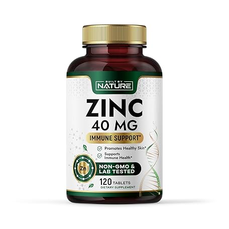 Built By Nature Zinc 40 mg – High-Potency Immune Support & Antioxidant Supplement – Promotes Skin Health & Wound Healing – Zinc Gluconate – Non-GMO, Gluten Free – 120 Tablets