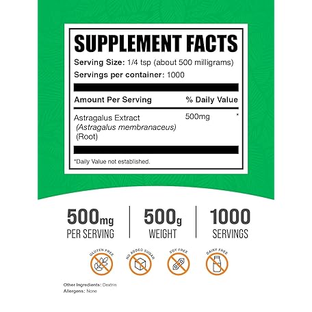 Thông tin sản phẩm BulkSupplements com Astragalus Extract Powder - Astragalus Root Powder, Herbal Supplement - Vegan & Gluten Free, 500mg per Serving, 500g (1.1 lbs) (Pack of 1)